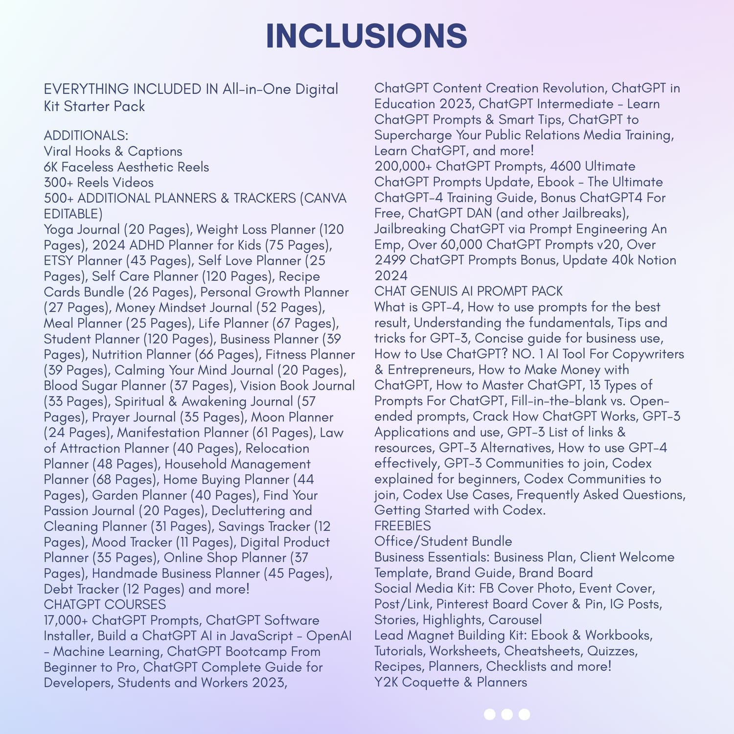 You donβt have to start from scratch! All inclusions are ready to sell, edit / rebrand.